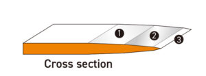 • The cutting edge is a three-bevel edge made with our blade-making technology for razors and is characterized by its sharpness.