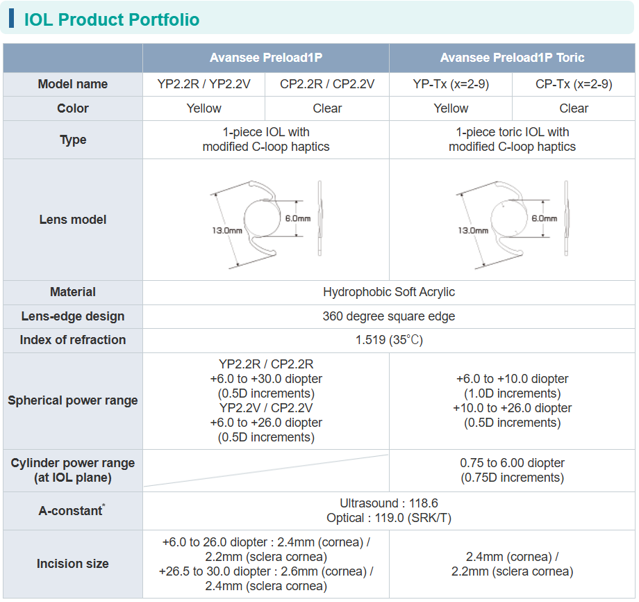 Model Name: Avansee Preload1P Clear CP 2.2R