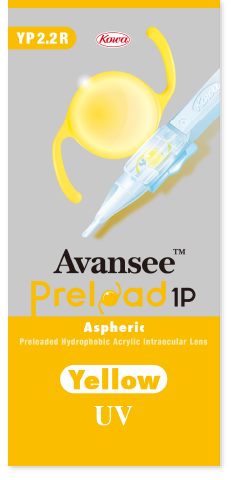 The YP 2.2R is a preloaded, one‑piece hydrophobic acrylic intraocular lens with a blue‑light filtering (yellow) optic. It is part of the Avansee Preload1P family and is designed for easy and sterile implantation using Kowa’s proprietary injector system.