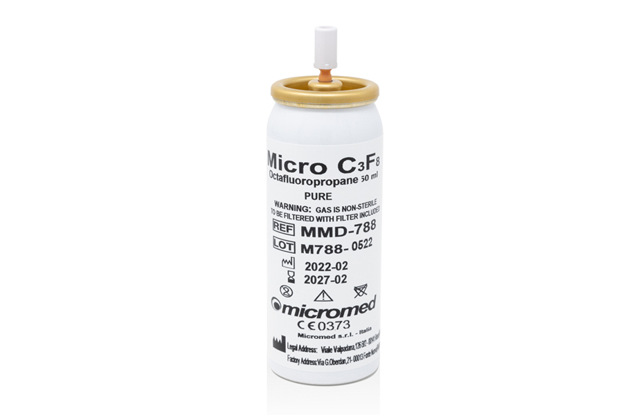MicroC3F8 (pure or mixed) is a class IIB implantable medical device. It is a high molecular weight gas used in vitrectomy, ab-external surgery, and pneumatic retinopexy. The product is intended to replace the vitreous humor and has a residence time in the eye of 7-8 weeks.